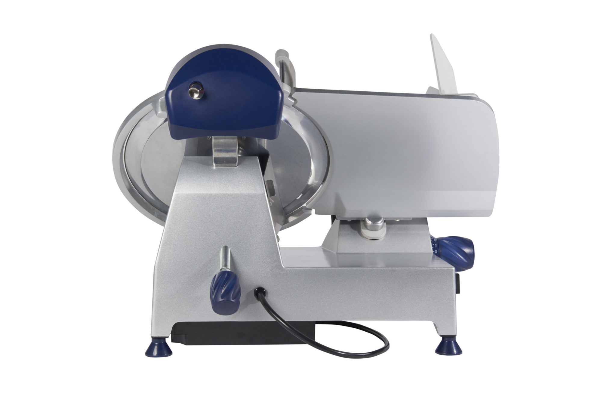 The Espectro SLE-12C is a great slicer for light duty slicing applications for up to 1 hour per day. This slicer is perfect for diners, pizzerias, and catering businesses. It’s razor sharp blade is made in Italy and it slices meat and vegetables with ease. The SLE-12C has a 1/3 horsepower motor and a 45 degree gravity feed for consistent slicing results.